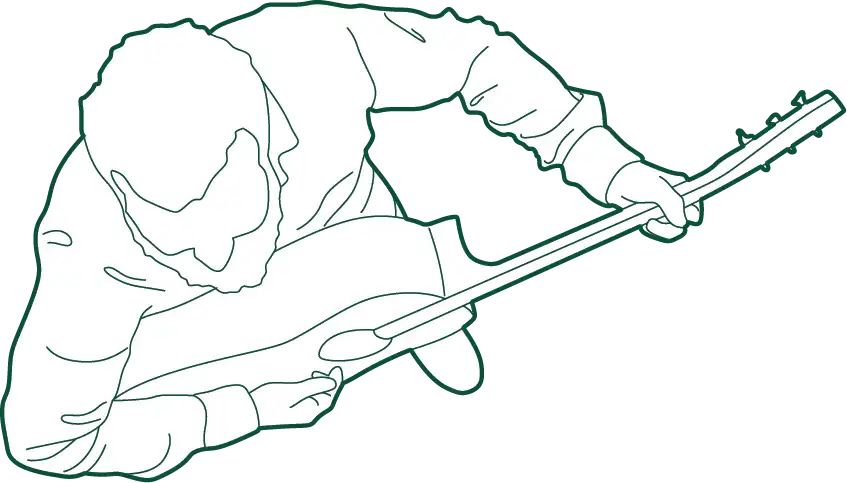 This male guitarist CAD figure shows a person playing a guitar, capturing a moment of musical performance. It is suitable for use in architectural drawings of entertainment venues, hospitality spaces, cultural facilities, and informal public gathering areas where music and performance occur.